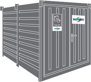 Vi leverer miljøcontainere som kan brukes til oppbevaring av spesialavfall. Miljøcontaineren har et dobbelt gulv med en oppsamlingstank.