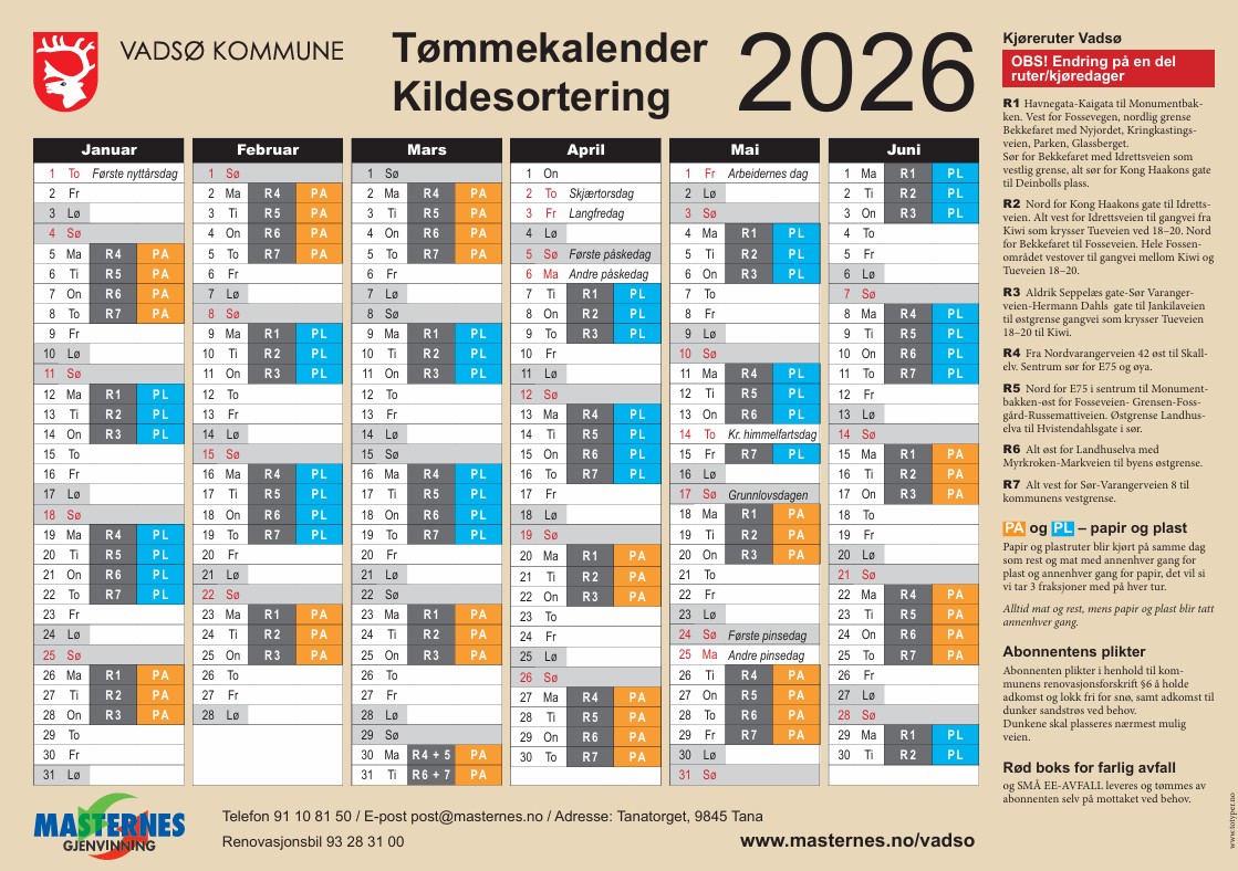 Gjeldende tømmekalender distribueres årlig sammen med aktivitetskalenderen for Vadsø kommune, samt legges ut her
